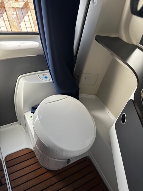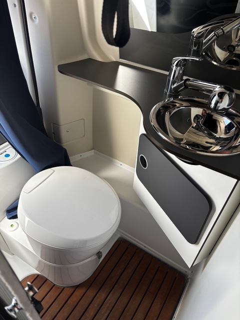 Coin salle de bain pratique avec un WC à cassette, un lavabo et une douche.